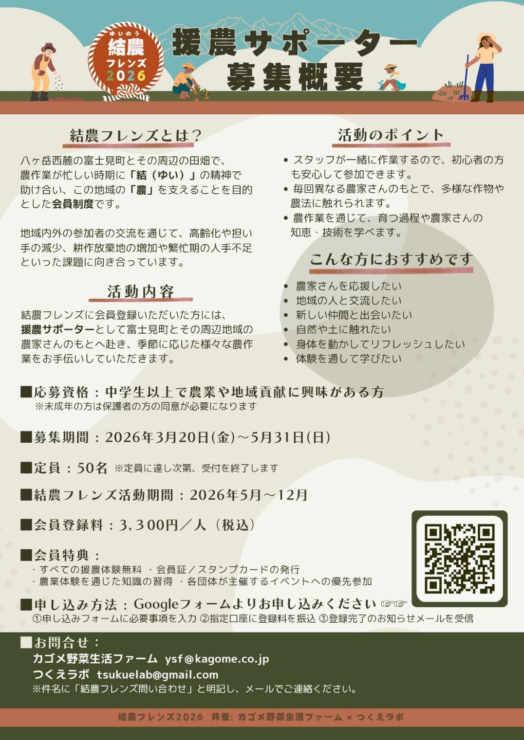 「結農フレンズ2026」 では、農作業の忙しい時期にみんなで助け合い、楽しく学びながら農を支える仲間を募集中!