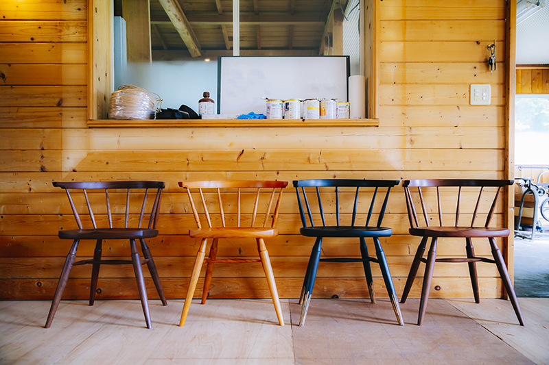 「そんな時期に岐⾩の⾼⼭で家具の展⽰会があって、その帰り道に役場の「富⼠⾒ウツリスムステーション」に、⾃分の作った椅⼦を持って⾏って、「僕こんな感じなんだけど、助けてください」って(笑)そうしたら、当時のご担当者さんですごく⼀⽣懸命な⽅がいらっしゃって、ここのすぐ近くに家が空いてる!と。その場で電話してくれて。その時は、貸すという話にはならなかったんですけど、その後にもいろいろ⼿配してくれたみたいで。後⽇「借りられることになりました!」と。古⺠家なんですけど。」