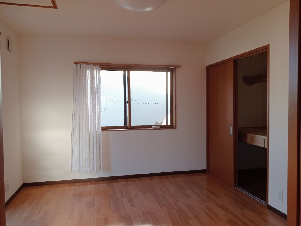 自然光が差し込む明るい洋室。白を基調とした内装で清潔感があります