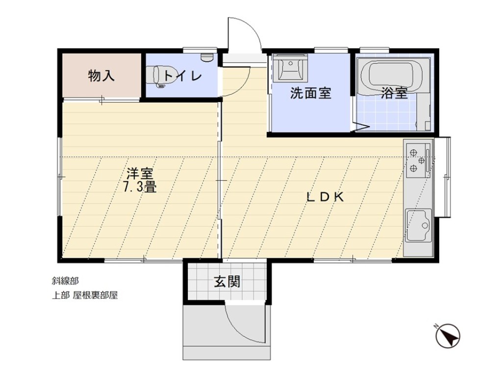 屋根裏部屋付平屋