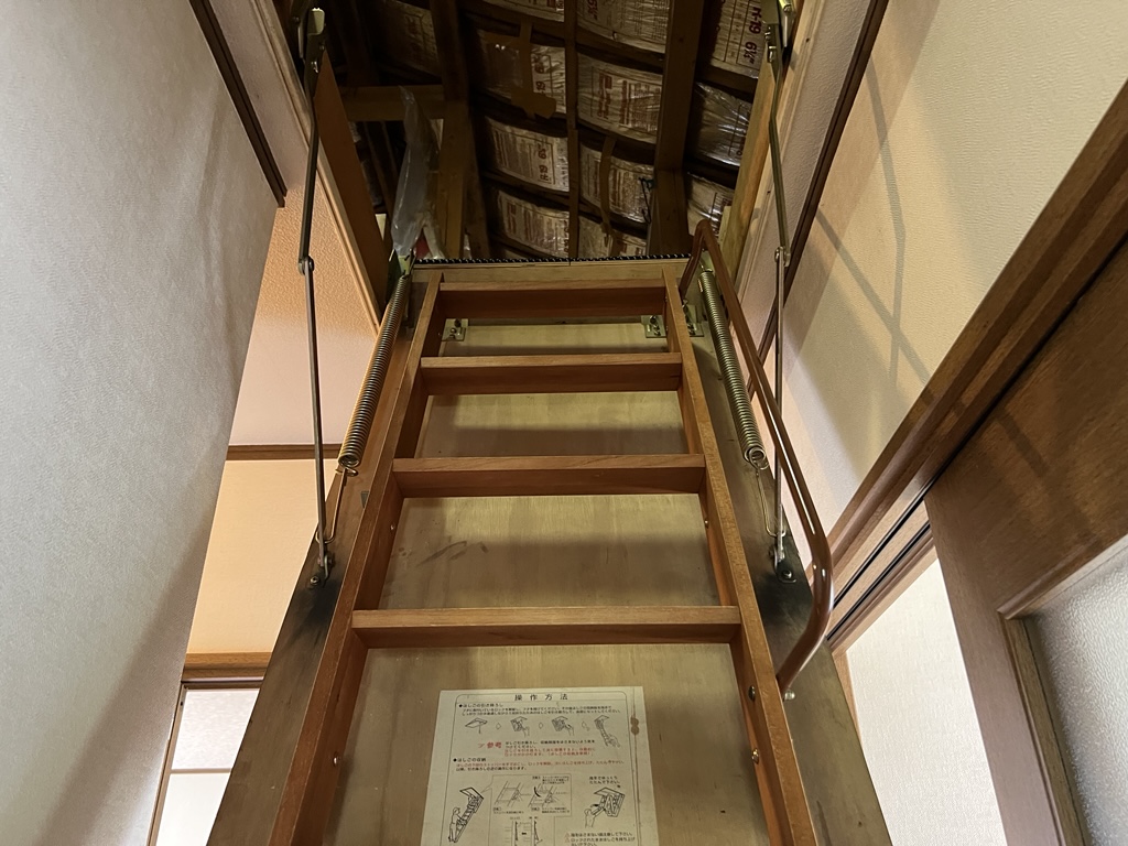 収納力のある賃貸物件を探している方にはぴったりの物件です。デッドスペースを有効活用した収納スペースもあるので、アウトドア用品やベビーカーなどもすっきり収納できます。普段は収納されている階段を出せば屋根裏への収納も可能で普段使わない荷物の保管に最適です。