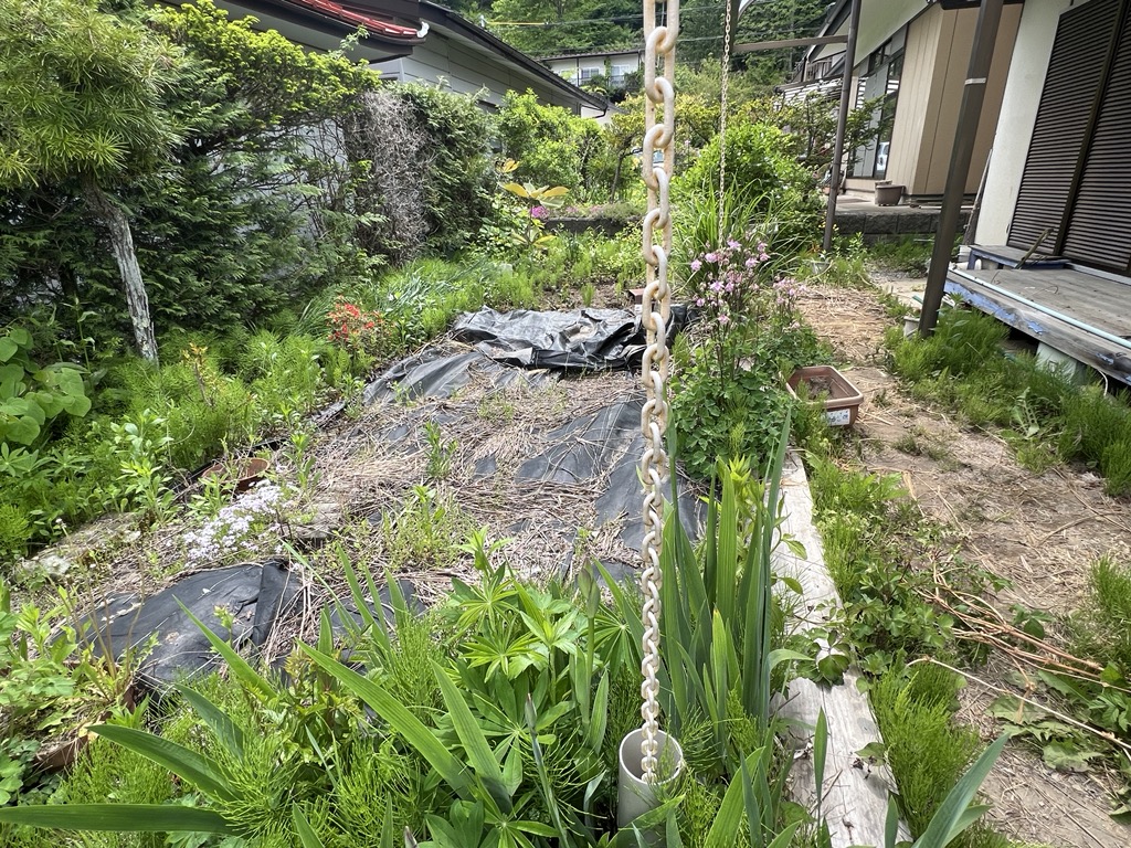 庭(マルチ部分は以前は家庭菜園)