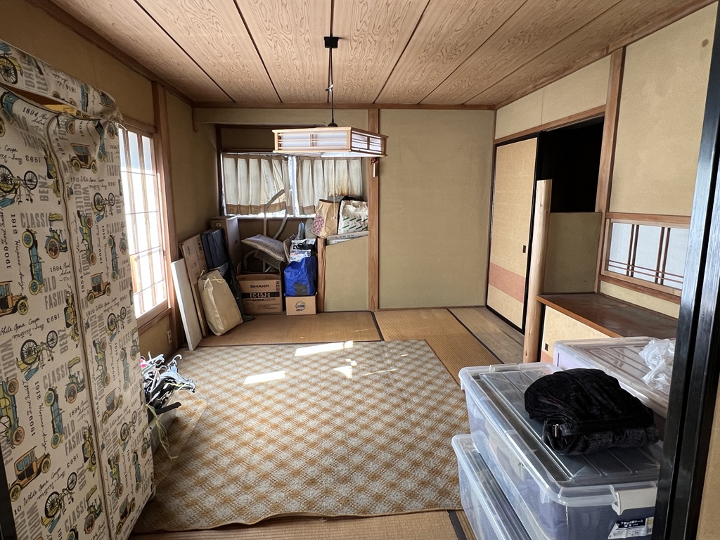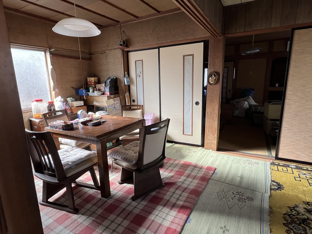 1階に水まわりを中心とした生活スペースがあり居間の他に2部屋、2階は3部屋の和室があります。現在は荷物が残っている状態です。