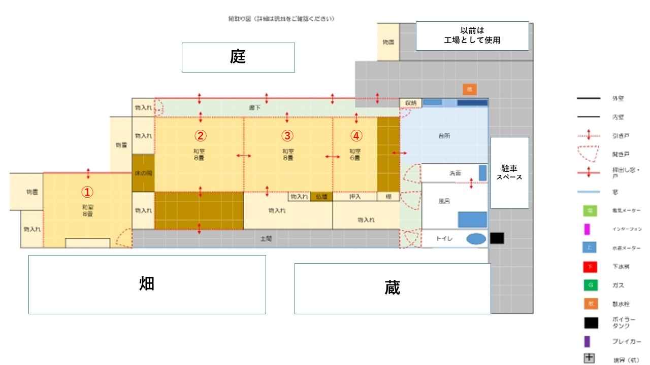 そのため、約140坪の敷地に4DKの母屋・蔵・倉庫兼工場がありアイディア次第では用途は様々。