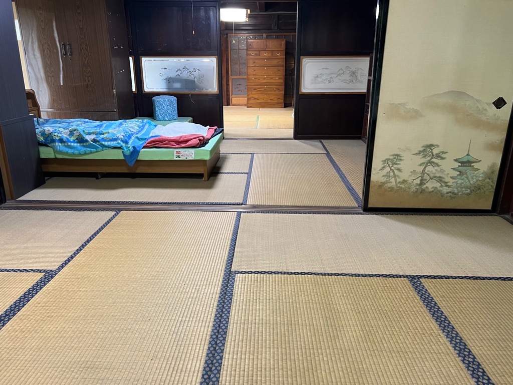 床の間付き和室12.5畳の2間続きの他に4.5畳の2間が2つあります。親戚や友人もゆったりお泊りできるサイズ感です。2階奥に以前お蚕を飼っていた養蚕場があります。写真一番右(残物あり)