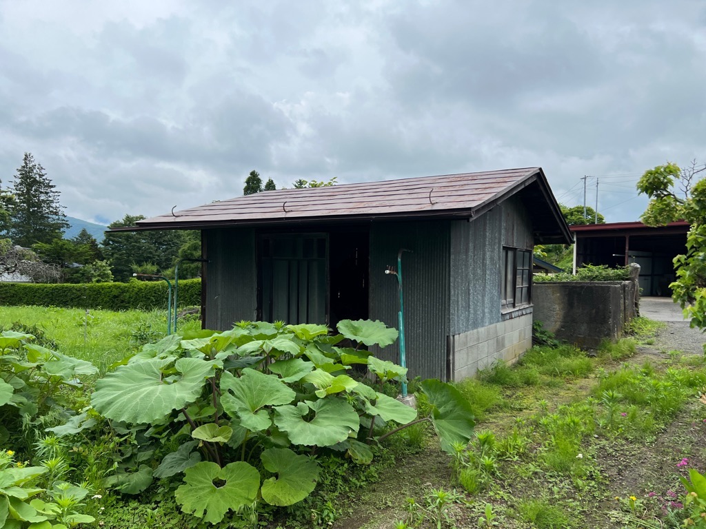 白壁と瓦屋根の立派な蔵ですが、こちらも改修が必要です。蔵の他に小さな小屋があります。以前は家畜小屋として使われたそうですが、片付けをすれば倉庫として使用できそうです。