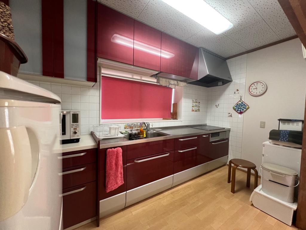 イタリアから取り寄せたタイルが素敵です。数年前に入れ替えたばかりのこだわりのシステムキッチン(IH仕様)。窓からは八ヶ岳を望みながら料理ができます!