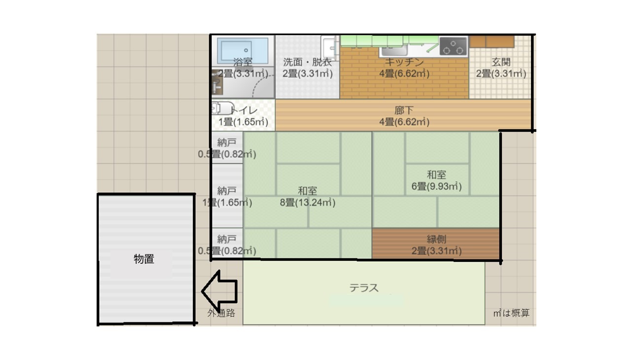 | 備考 | 現状渡し、植木有、権利譲渡、建物内外不用品は売主が撤去 | ||