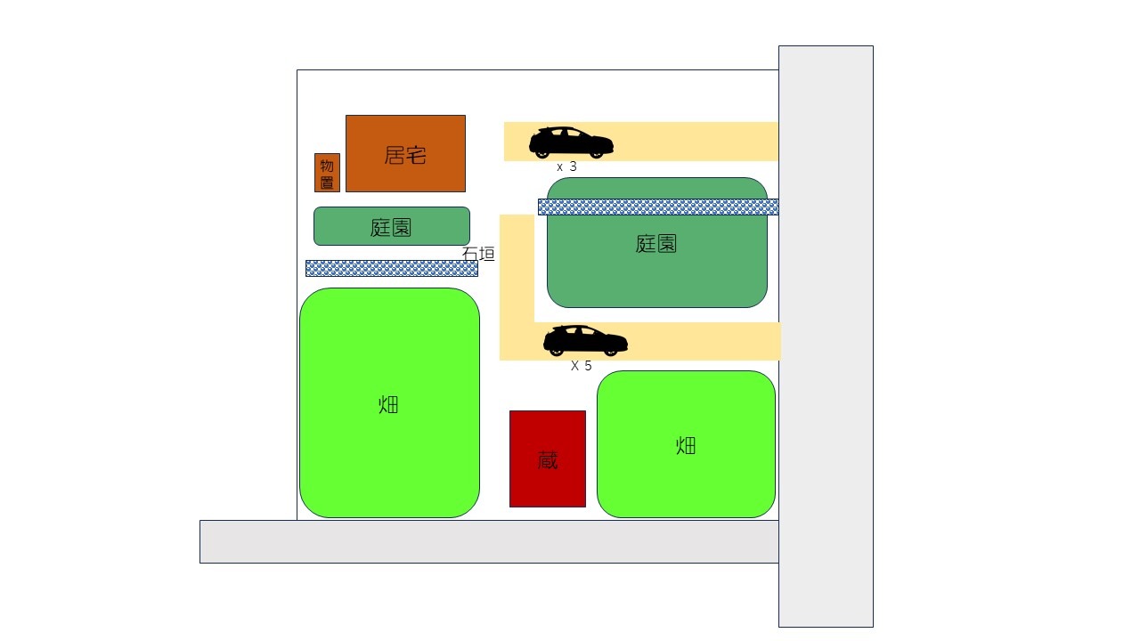| 土地 | 宅地1311㎡(397坪) | 建物 | 建物54㎡(16坪) |
